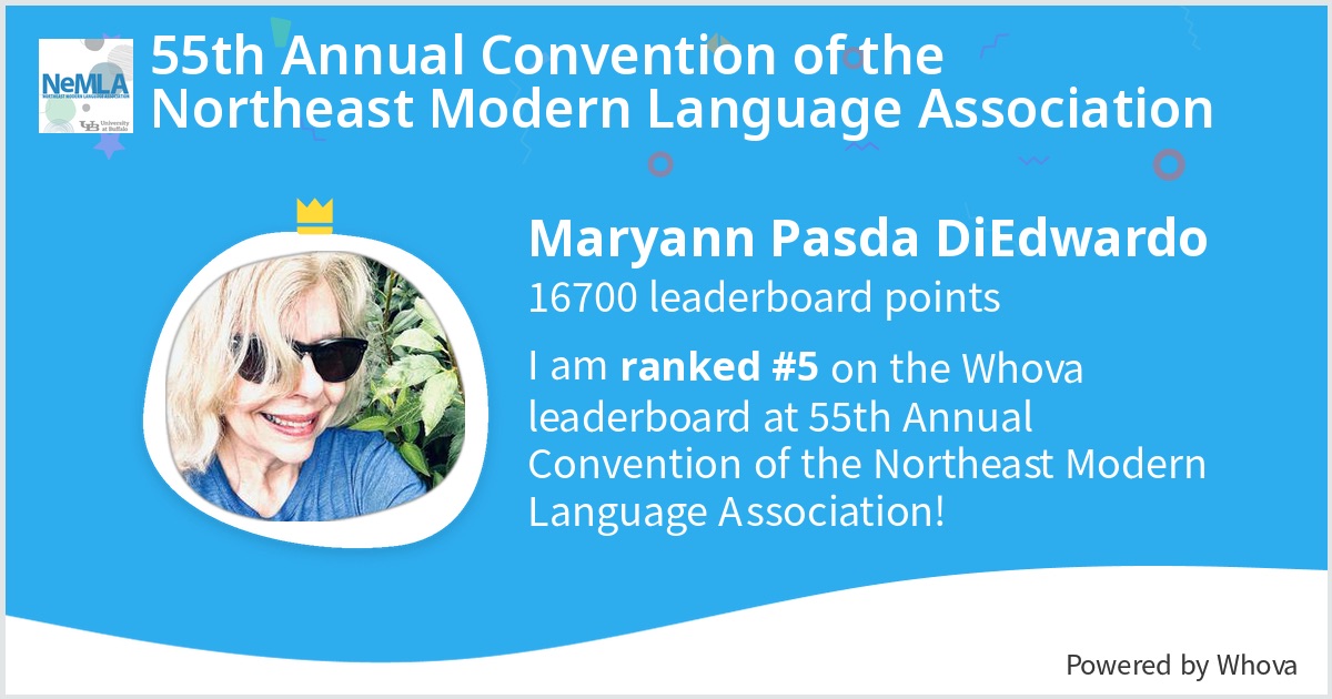 I ranked #5 on the Whova leaderboard at 55th Annual Convention of the Northeast Modern Language Association! #NeMLA – via #Whova event app
